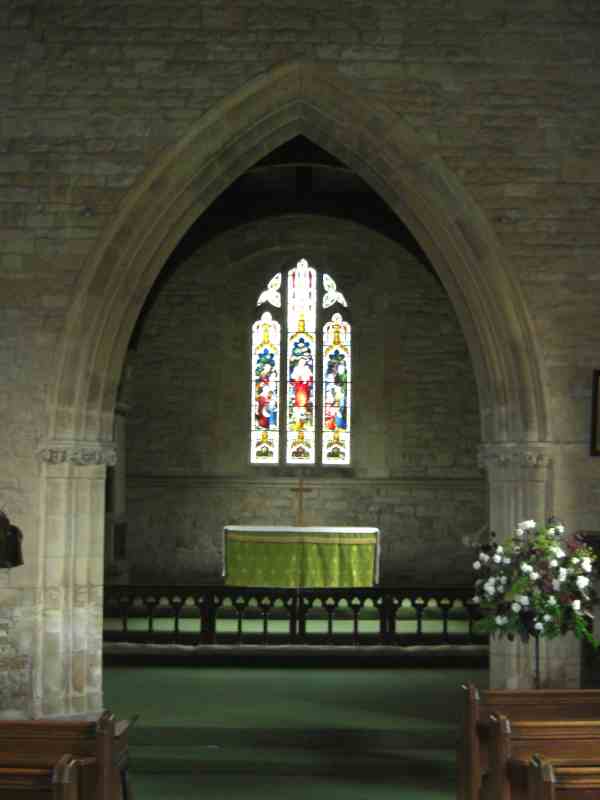 I arrived a little early and took the opportunity to take a look at the Church. It was nice to find that the Church was not locked so went inside to find a rather attractive interior. It is quite simple is style with an attractive stained glass window in the North West corner and a stained glass window in the Chancel that must be stunning as the sun rises and shines though it [photo]. While I could have sat in the Church and waited I decided to have a sit in the sun. I could not find a bench so sat on the grass. I imagine that some visitors would prefer a bench, as would I if it had not been a dry sunny day.