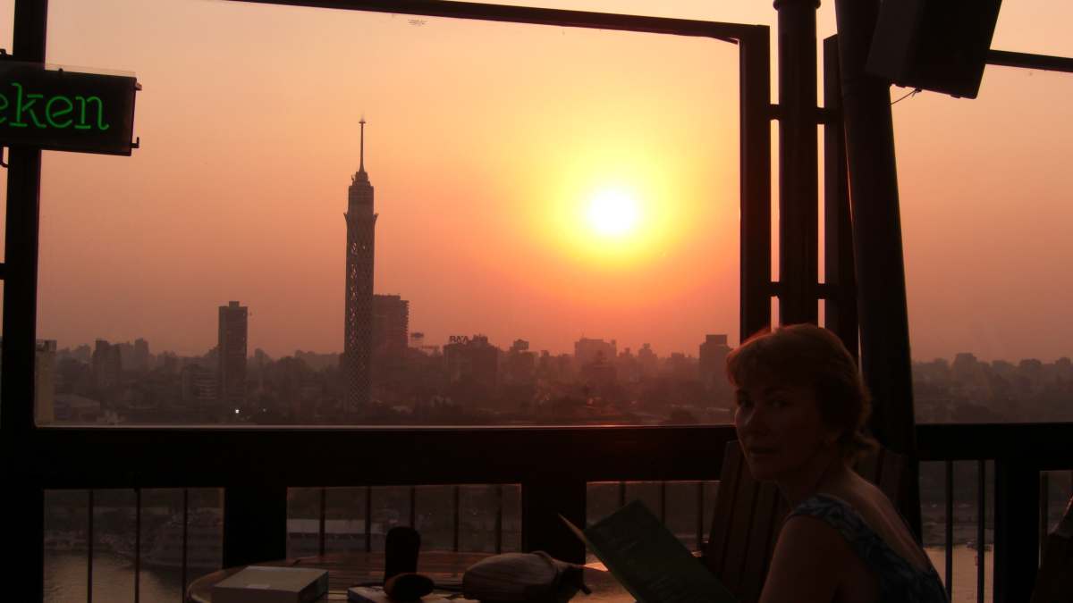 In the evening we try Jazzup, yet another of the Hotel's eateries. It is a bit like a pub, but only superficially. We share a couple of snacks, one a local deep fried minced lamb something or other and a more familiar Quesadilla. Later we head back up to El Mojito on the rooftop to watch the sunset. Yet another snack of chicken wings, though very different to the American snack of the same name accompanied by a litre of Sangria to share. Lynn is beginning to feel that it might be a good idea, after all, to have a plan! It will start tomorrow with a visit to the Khan el-Khalili bazaar and the Islamic Cairo that encompasses the bazaar.