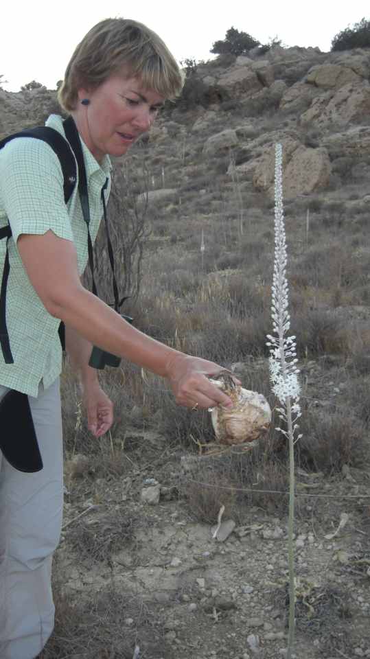 We set out for a hike to see the sunset. We head Northwest climbing Jebel Rummana (1300m) with our local guide giving us a running commentary on Dana Nature Reserve as a whole and the specifics of the flora fauna that we saw along the way. I learned that the tall, white, flower spike I had seen in Petra and here was a type of onion. It is not edible by humans but porcupines dig them up to eat.